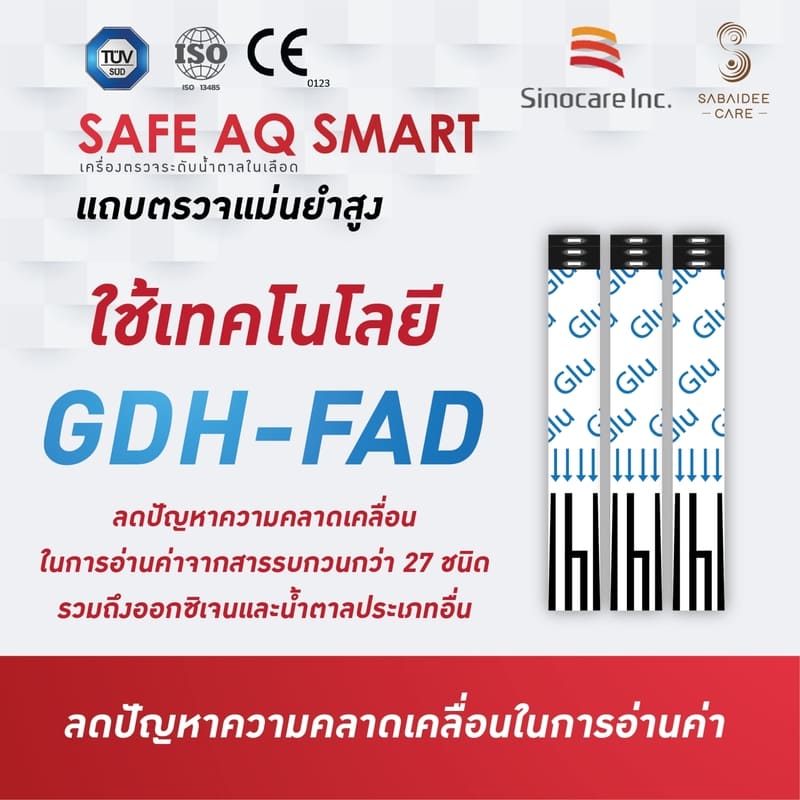 ผลิตโดยใช้เทคโนโลยี GDH-FAD ที่ช่วยลดปัญหาที่เกิดจากความผิดพลาดในการอ่านค่าจากออกซิเจน จึงมั่นใจได้ในความแม่นยำ